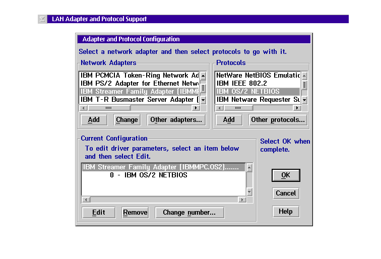 The File and Print Server usually uses the IBM NETBIOS protocol (NETBEUI). It is also possible to use IBM NETBIOS over TCP/IP (TCPBEUI). If you choose this protocol, you must also install TCP/IP. You can use NETBEUI and TCPBEUI at the same time, but you have to assign them different protocol numbers.